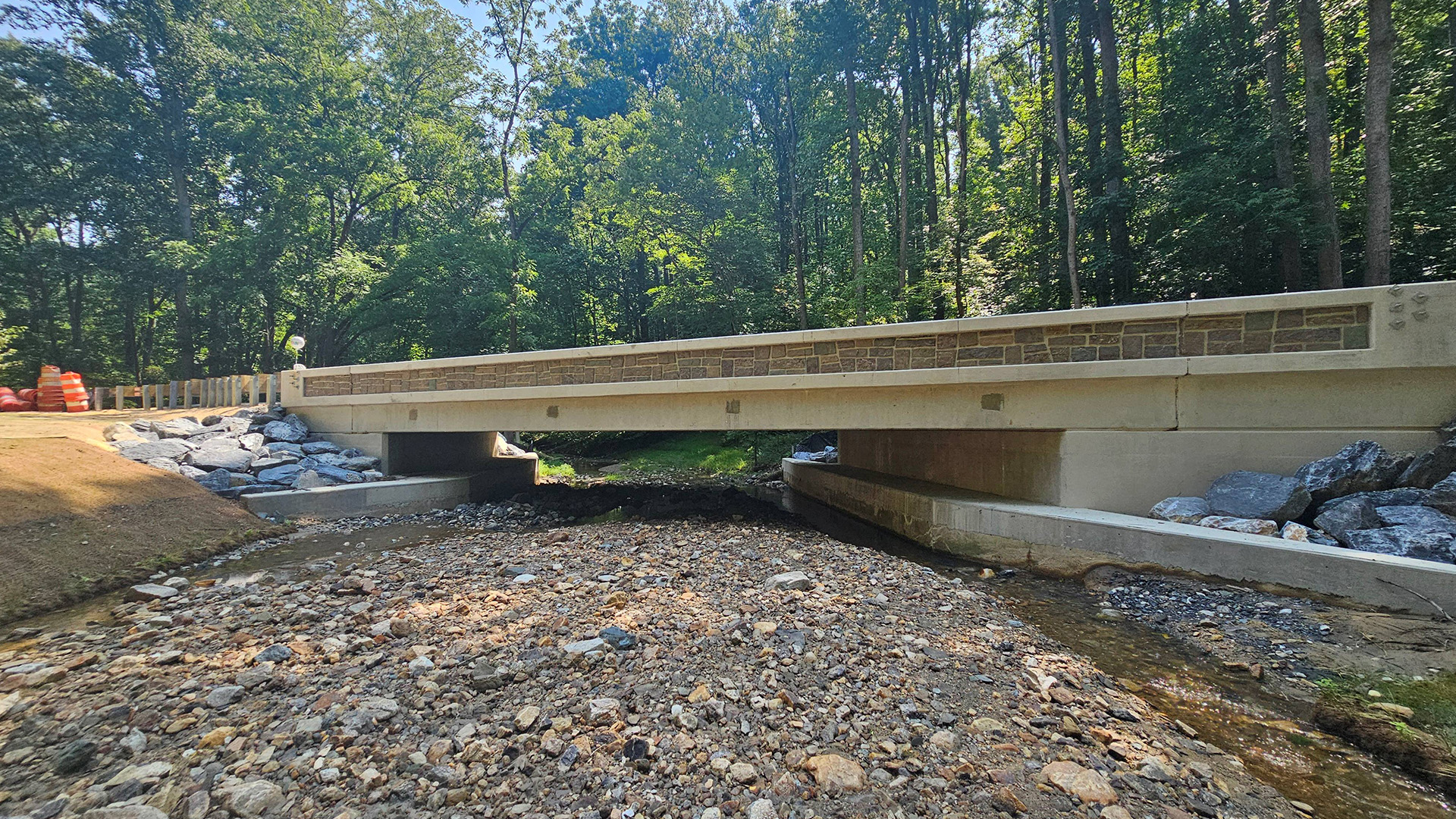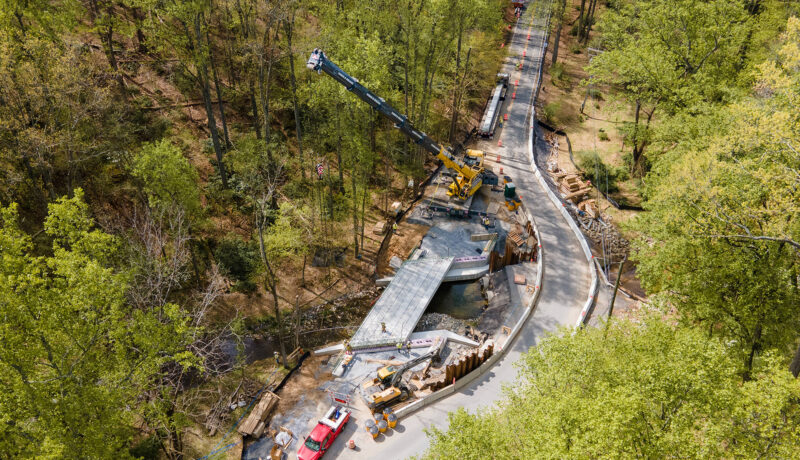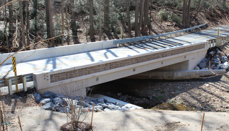 This project delivered a complete replacement of a 90+ year-old bridge serving as the sole access for local residents. The new structure features a single-span, prestressed concrete slab beam bridge with a reinforced concrete overlay, providing increased roadway width, significant safety improvements, and sustainability. Accelerated Bridge Construction and maintenance of traffic techniques, including prefabricated elements and a temporary bypass road with traffic signals, cut construction time from 20 months to just 8 months, minimizing community disruption. Innovative drilled shaft foundations with rock sockets enhance scour resilience, while context-sensitive design and aesthetic concrete parapets blend the bridge into its natural surroundings. The project was completed ahead of schedule and within budget, ensuring safe, reliable access and decades of low-maintenance service for Howard County.